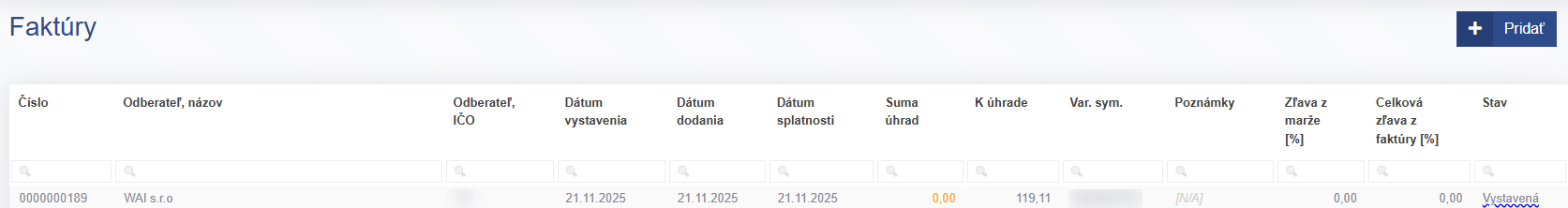Vďaka tomuto označeniu sme jednoducho mohli vytvoriť novú sekciu a novú tabuľku, kde sa zobrazovali len rakúske faktúry. Do formuláru s rakúskymi faktúrami sme pridali nové tlačidlá na tlačenie rakúskych faktúr a položkám, ktoré sa nachádzajú vo faktúre bolo nastavené DPH automaticky na 0%.